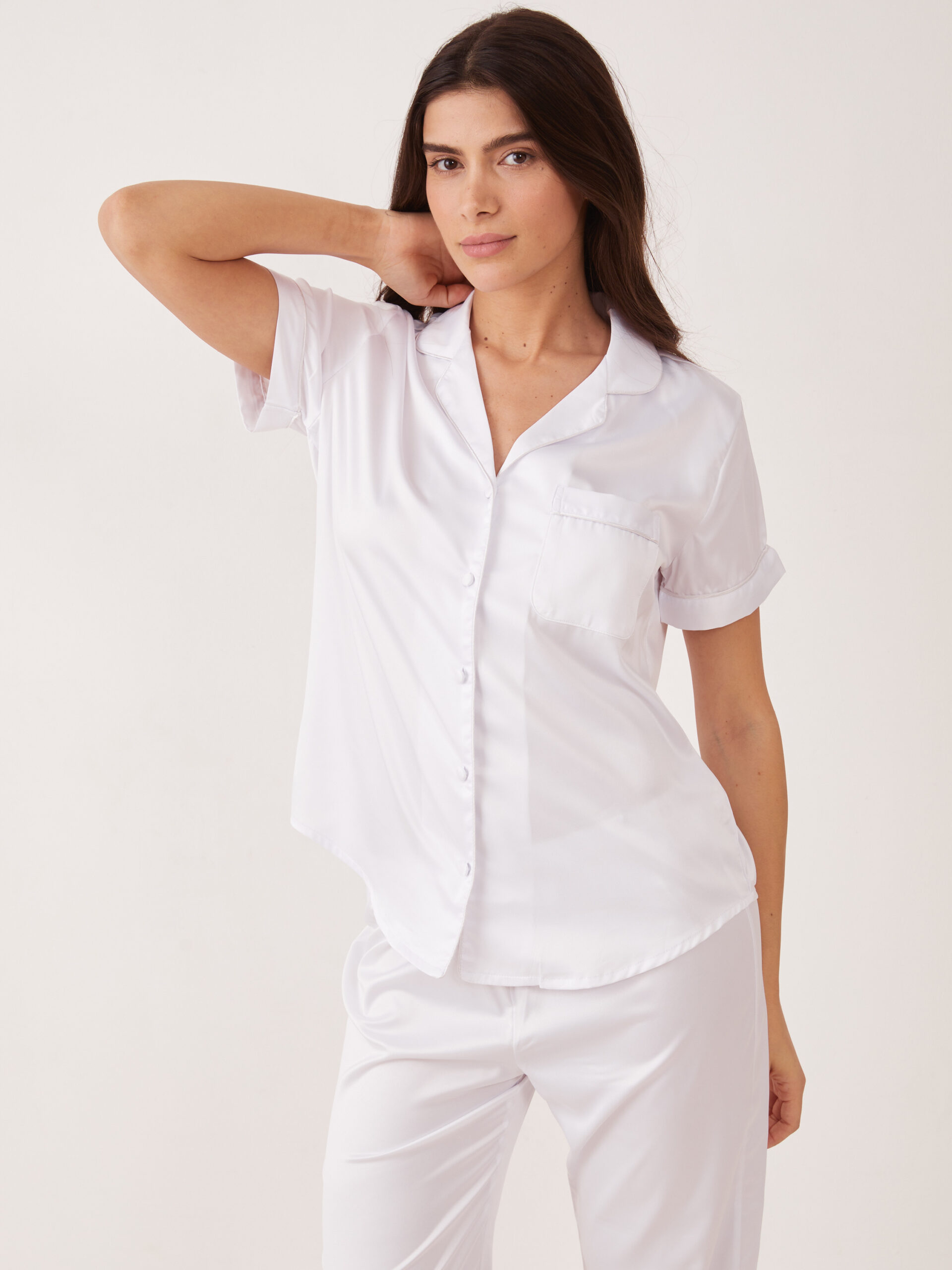 + Free Shippingסט פיג׳מה מבד סאטן חולצה שרוול קצר ומכנס ארוך.